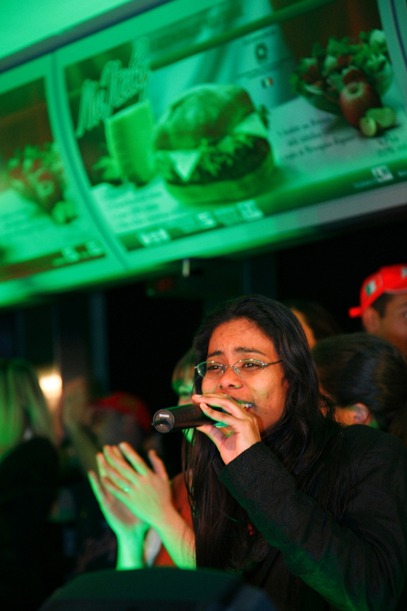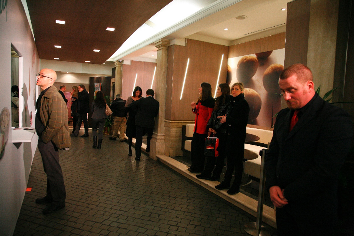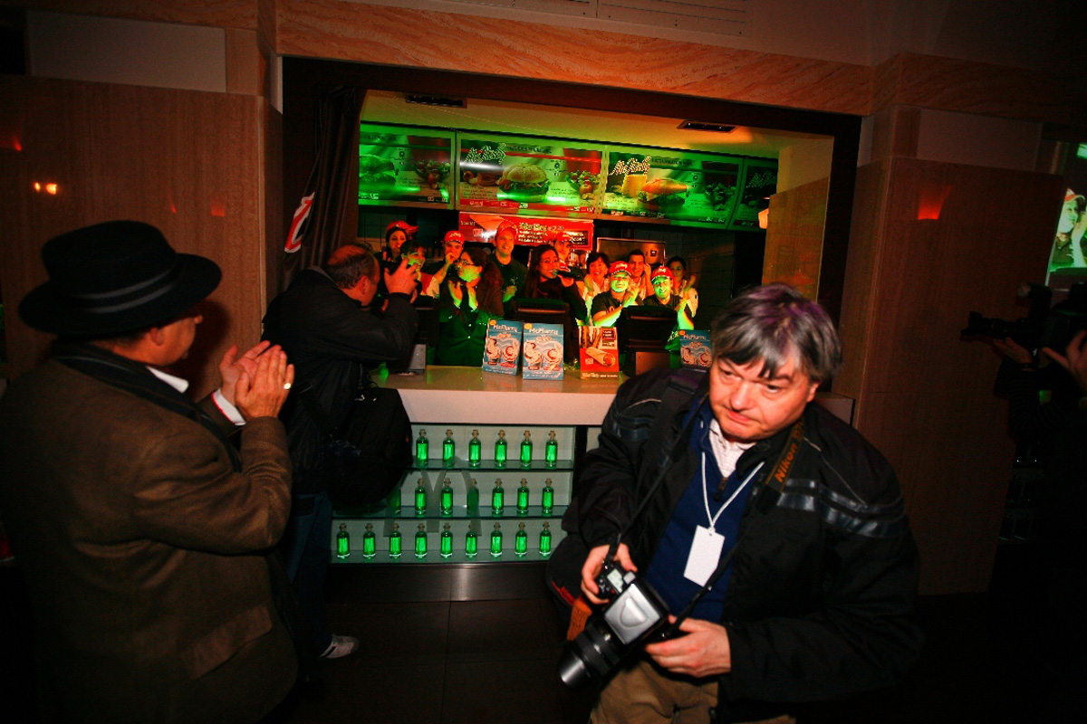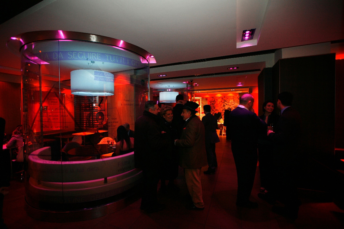 Fare una festa con invitati VIP in un fast-food non è scontato, i luoghi nell’immaginario non coincidono, se da una parte dovevamo allontanarci dall’immagine accreditata del fast-food dall’altra dovevamo trovare il modo di sostenere il tema “alimentare” alla base della comunicazione senza che la festa diventasse “paesana” e alla fine ricordare che in verità si trattava proprio di un fast-food. Così abbiamo trasformato lo spazio ed immaginato una scaletta fatta di piccole sorprese ad accompagnare la serata.
