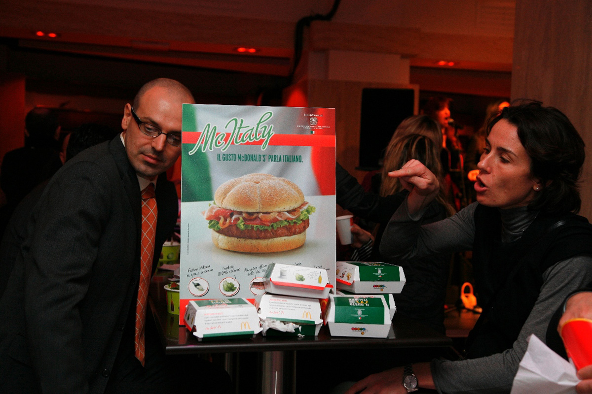 Cohn&Wolfe ha chiesto a Sitpuntocom una festa per il lancio della nuova linea McItaly, un modo trendy per far ‘digerire’ McDonald’s agli italiani attraverso un nuovo menù di prodotti “doc”, “dop” e “igp” ed una occasione per far parlare la stampa. Noi abbiamo affidato il lato relazioni e VIP alla TRC tenendoci il lato creativo e produttivo del lavoro.